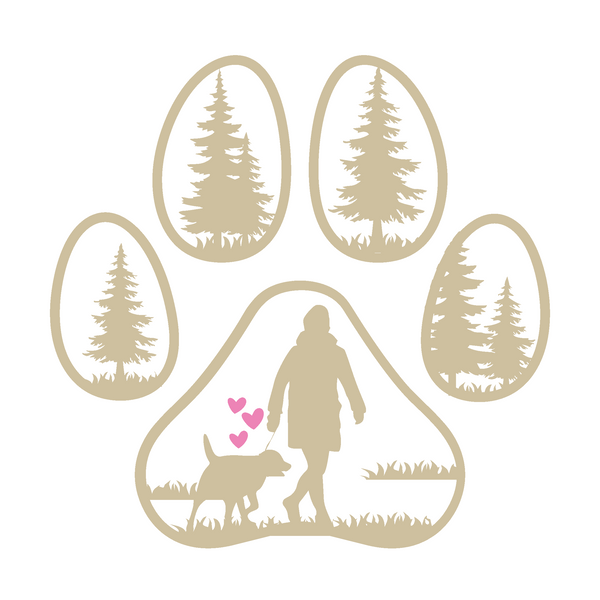 Die Cut Vinyl Decal Of A Dog Paw With Outdoor Scene