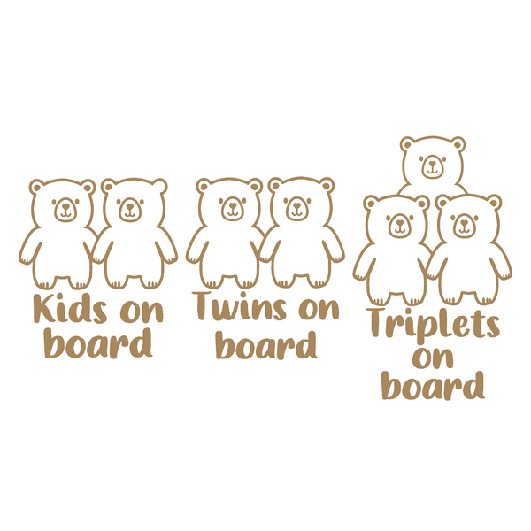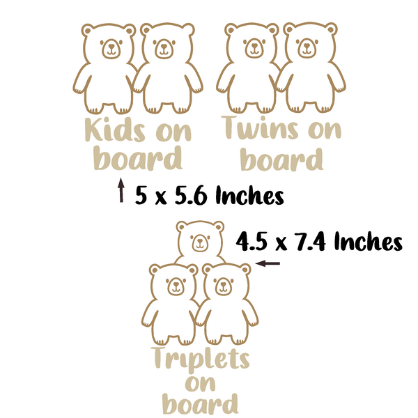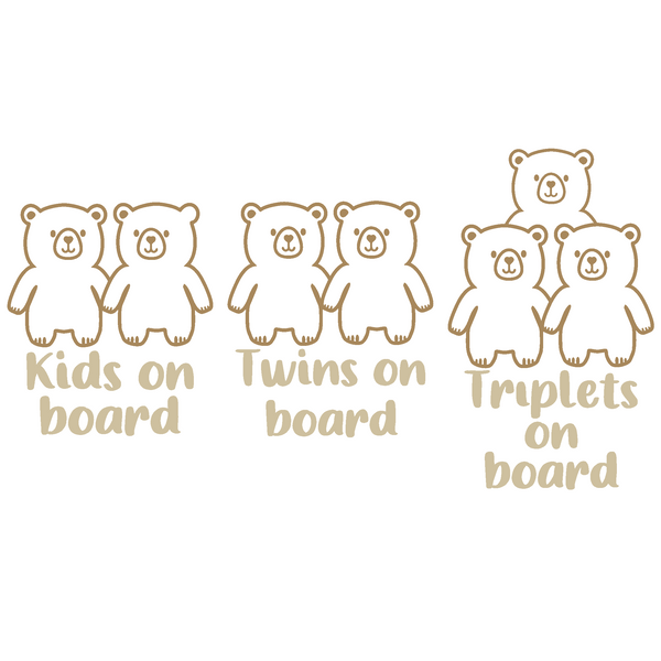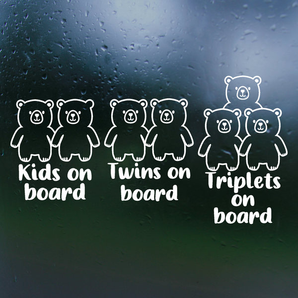 Bear Themed Kids / Twins / Triplets On Board Die Cut Vinyl Decal